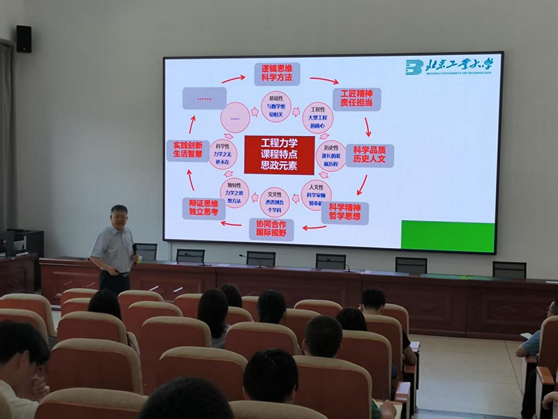讲座中,杨庆生教授结合北京工业大学国家课程思政示范课程的建设经验,系统阐述了课程思政的建设理念、主要内容、实施路径和评价体系。杨教授强调,要注重课程思政与教学创新的有机融合,并以力学课程为例,深入剖析了专业知识体系与育人体系的辩证关系,通过典型案例展示了如何将思政元素自然融入专业教学,避免生硬植入。最后介绍了参加河北省课程思政大赛的评审观感。