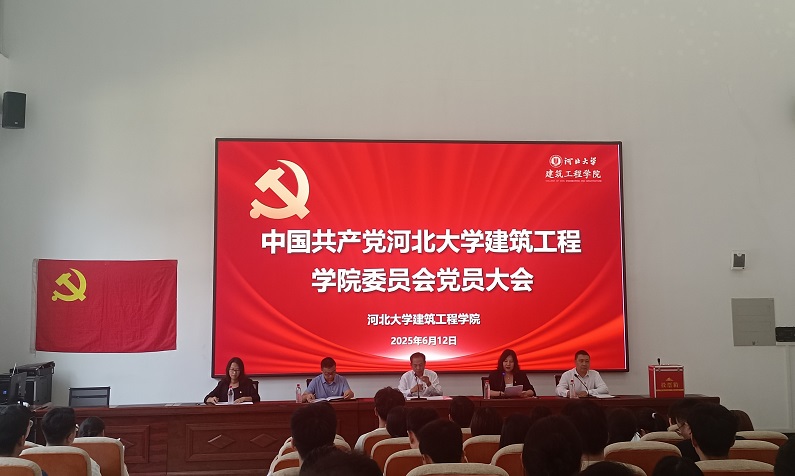 2025年6月12日,根据《中国共产党章程》有关规定及学校党委统一部署,经学校党委组织部、纪委批准,中国共产党河北大学建筑工程学院委员会换届选举党员大会隆重召开。学院134名师生党员参加会议,大会由学院党委副书记佘丹丹主持。